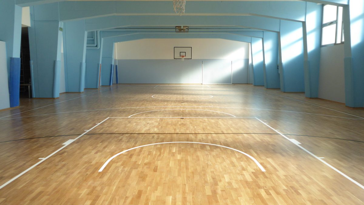 Gymnastiksalen er opdelt i 3 baner: Dette er bane 1