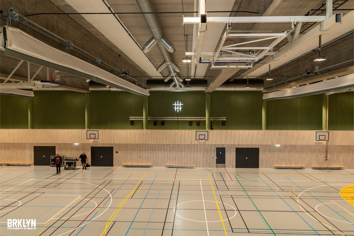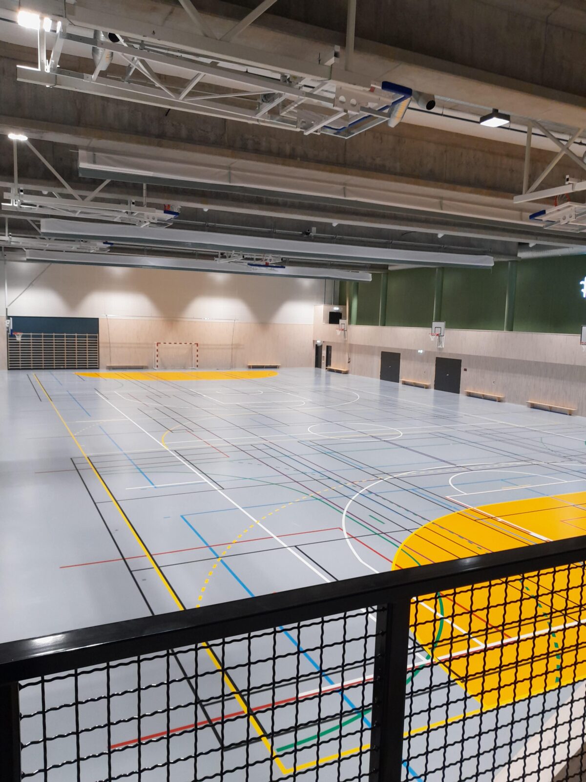 I multihallen er der tre skillevægge, så hallen kan opdeles i 4 baner.