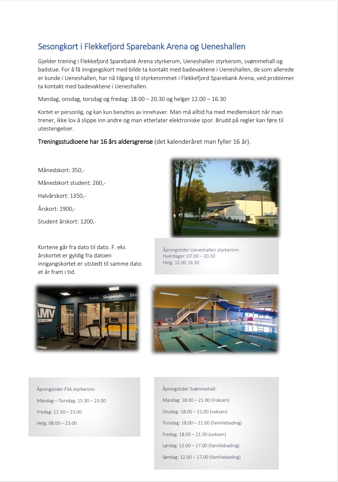Flekkefjord gymnasium disponerer over styrkerummet i dagtimerne, mandag – fredag kl 08.05 – 15.15.