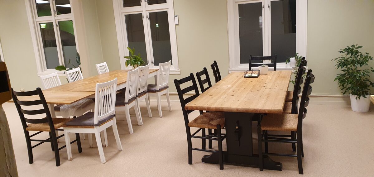 Great renovated premises in Hollenderbyen in Flekkefjord Sentrum. In close connection to Flekkefjord town hall, Galleri Guldbrandsen, SMAABYEN, the building customs center and Flekkefjord museum. During the day, the premises are used by Lister Jobbskole. The corps have fixed times and dispose of parts of the house. We want to offer teams and associations a good meeting room in the kitchen at Kirkegaten 52.