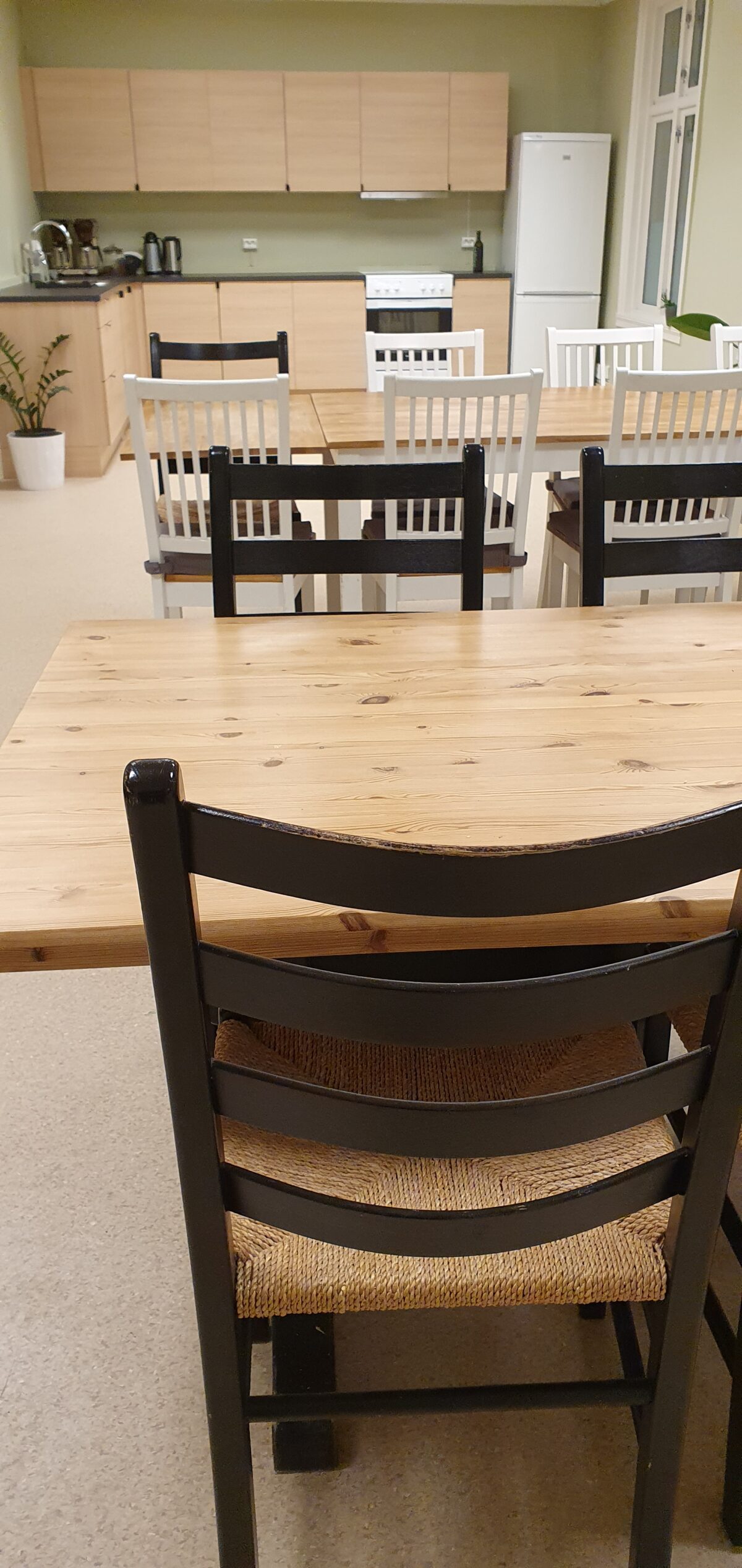 Well-equipped meeting room/cultural room with two large tables and chairs for 16 people, possibility to insert extra table and chairs for 30 people and the open kitchen with a cover for 30 people. It is also possible to use a projector.