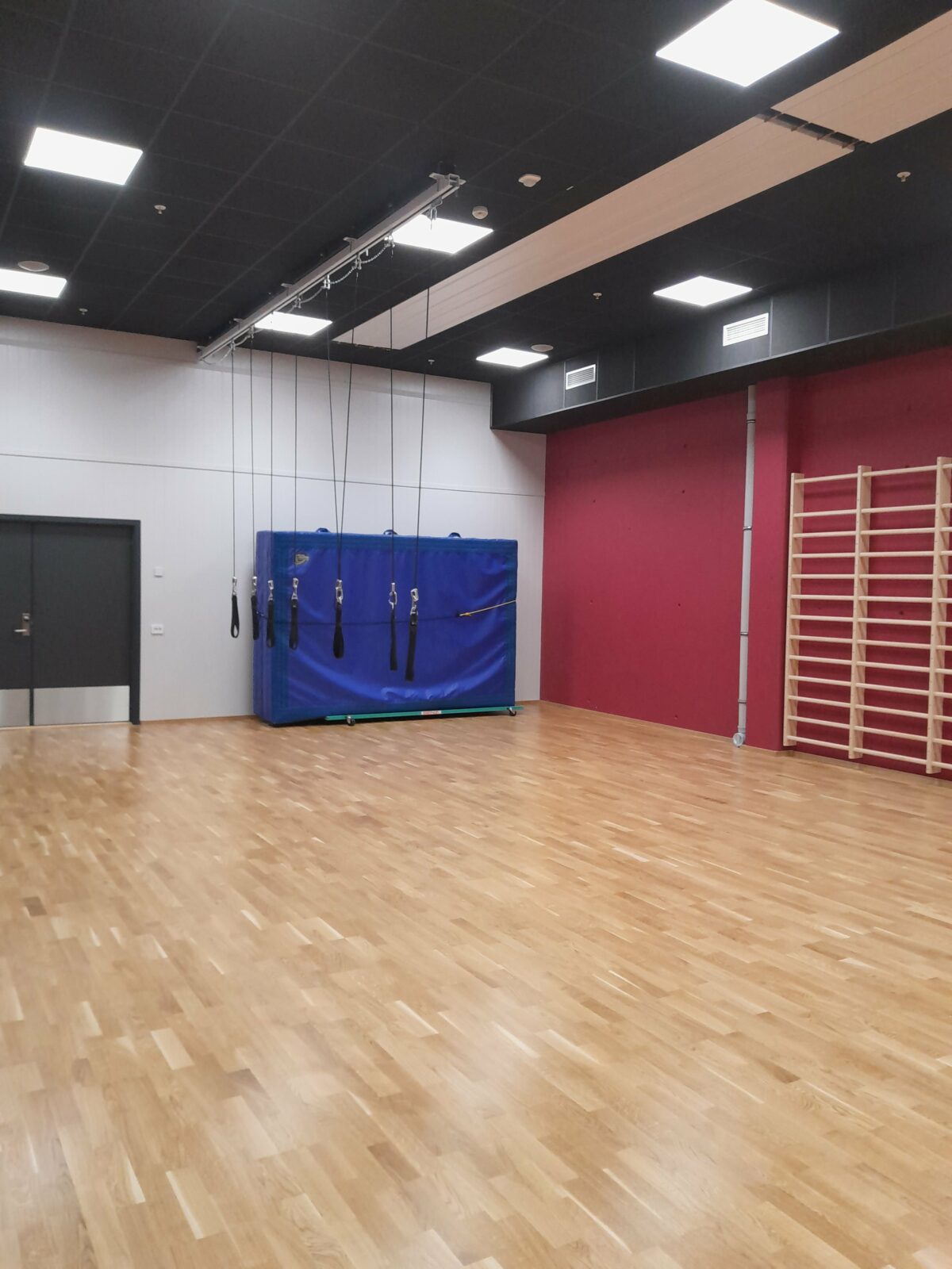 Utstyr for slynge, ringer, tau, ribbevegg og en boksesekk.