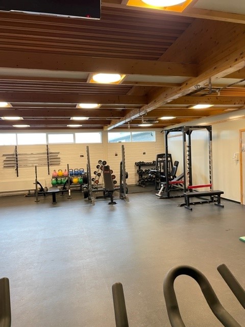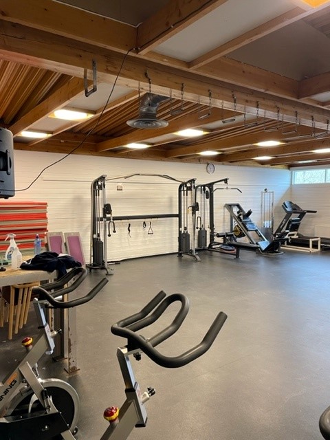 Stort styrkerum med 15 spinningcyklar och massor av träningsredskap.